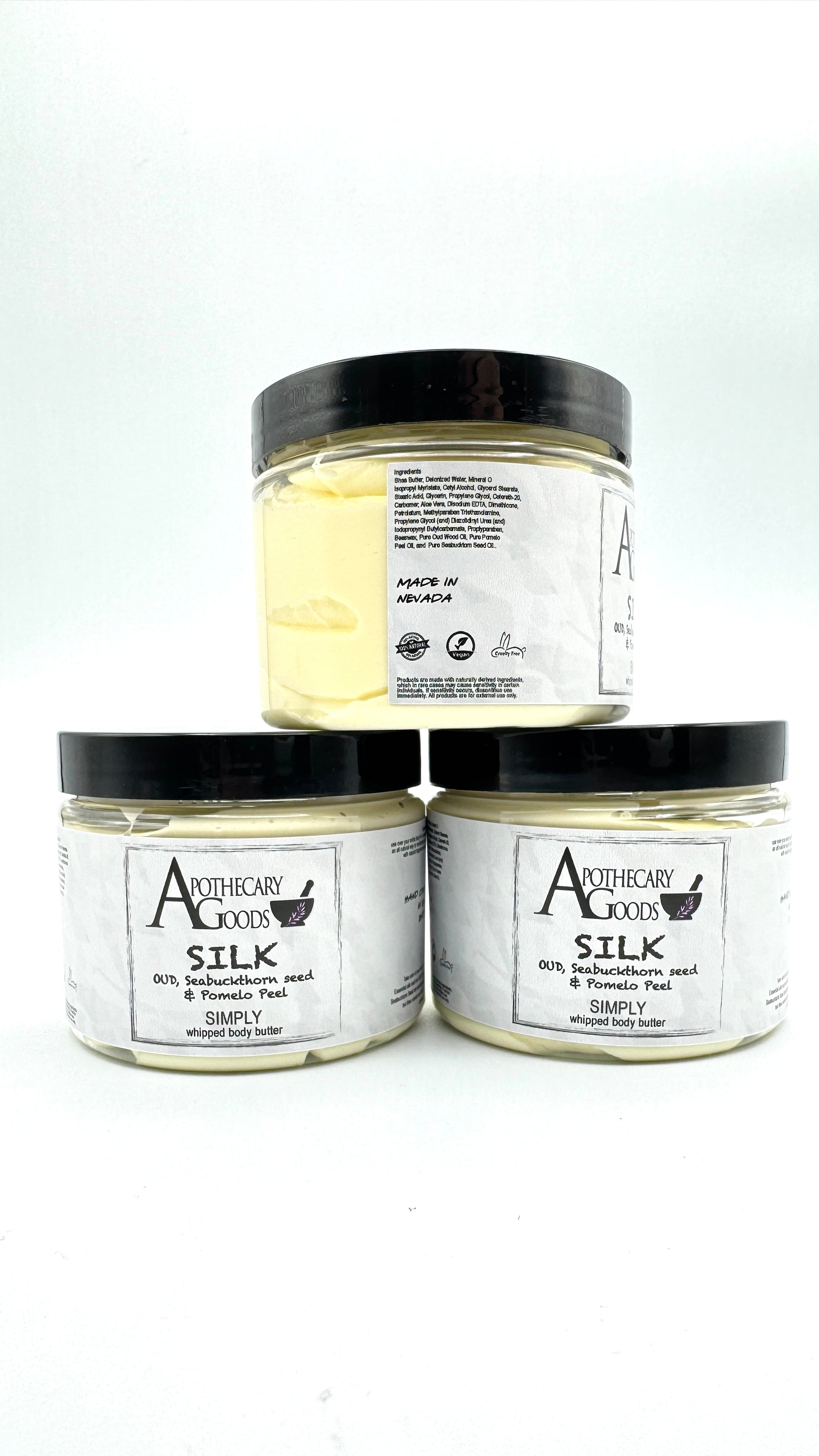 Discover the essence of pure indulgence with Apothecary Goods' SIMPLY Silk, a part of our esteemed natural product line. Our commitment to natural, wholesome skincare is embodied in this exquisite whipped body creme, designed for those who seek a luxurious and natural skincare experience.