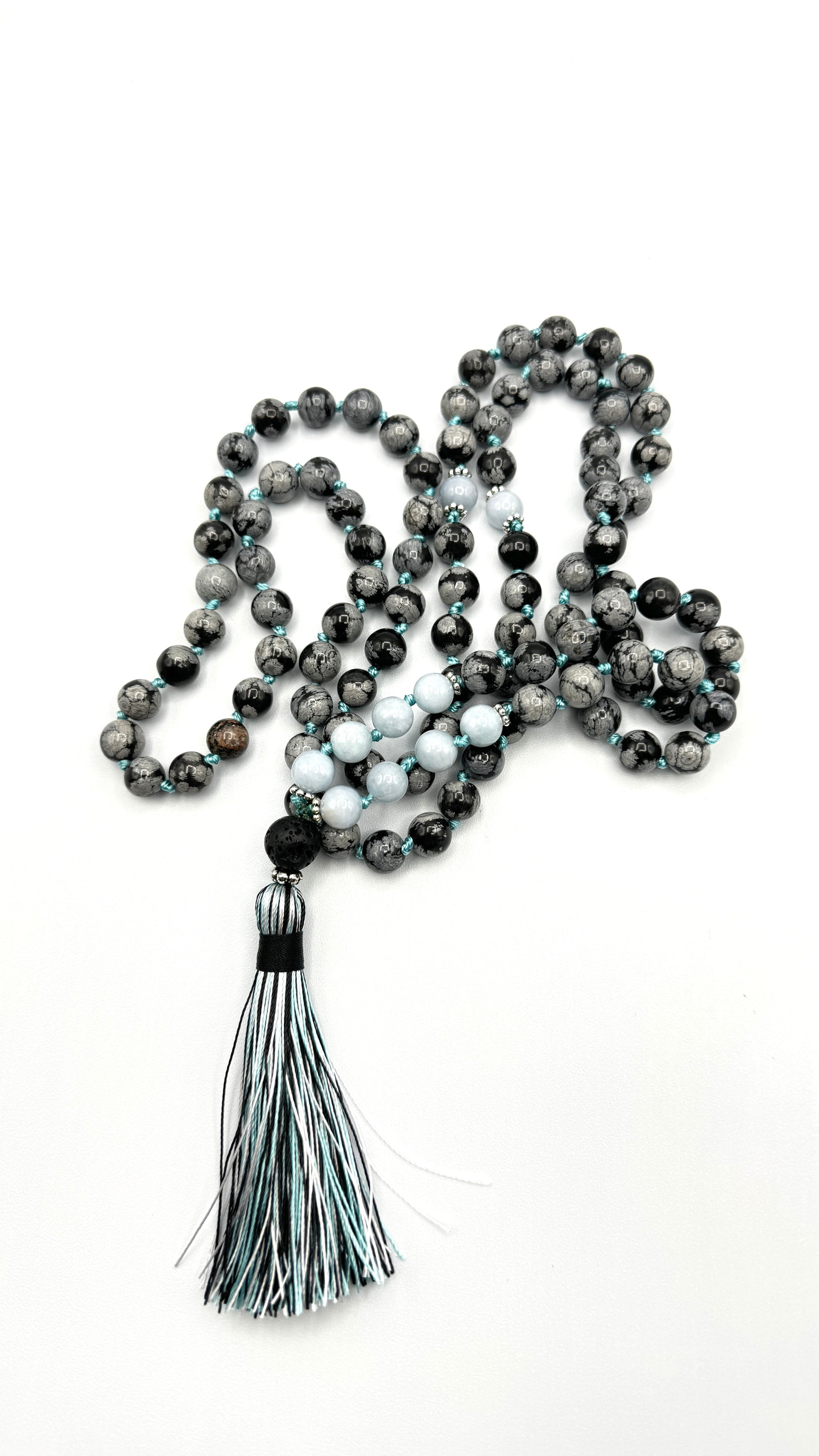 Each bead in this hand-tied, high-quality necklace from our Goddess Bead Collection has been selected with intention, creating not just a piece of extraordinary beauty but also a spiritual talisman. Wearing the Yemaja's Blessing Mala Necklace connects you directly to the goddess's empowering spirit, imbuing your life with her gifts of joy, happiness, and abundance.